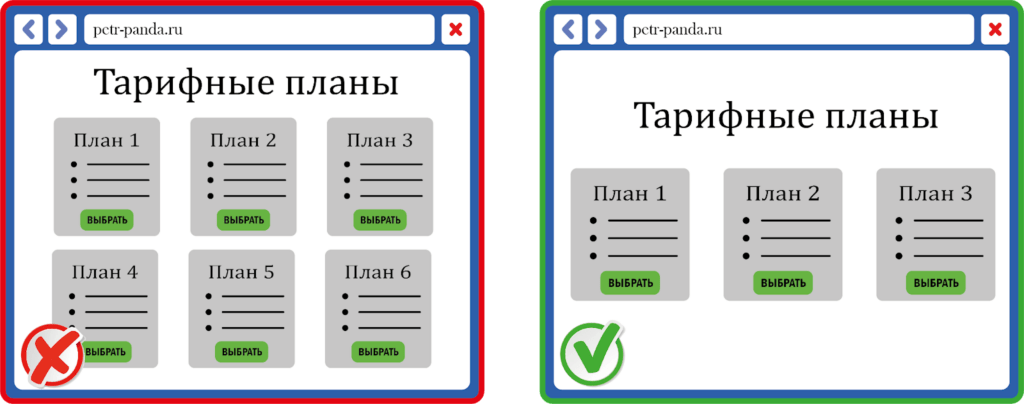 Пусть самые выгодные и отличающиеся друг от друга услуги попадут на главную страницу. Так покупателю проще принять решение и быстрее сравнить ваши тарифы.